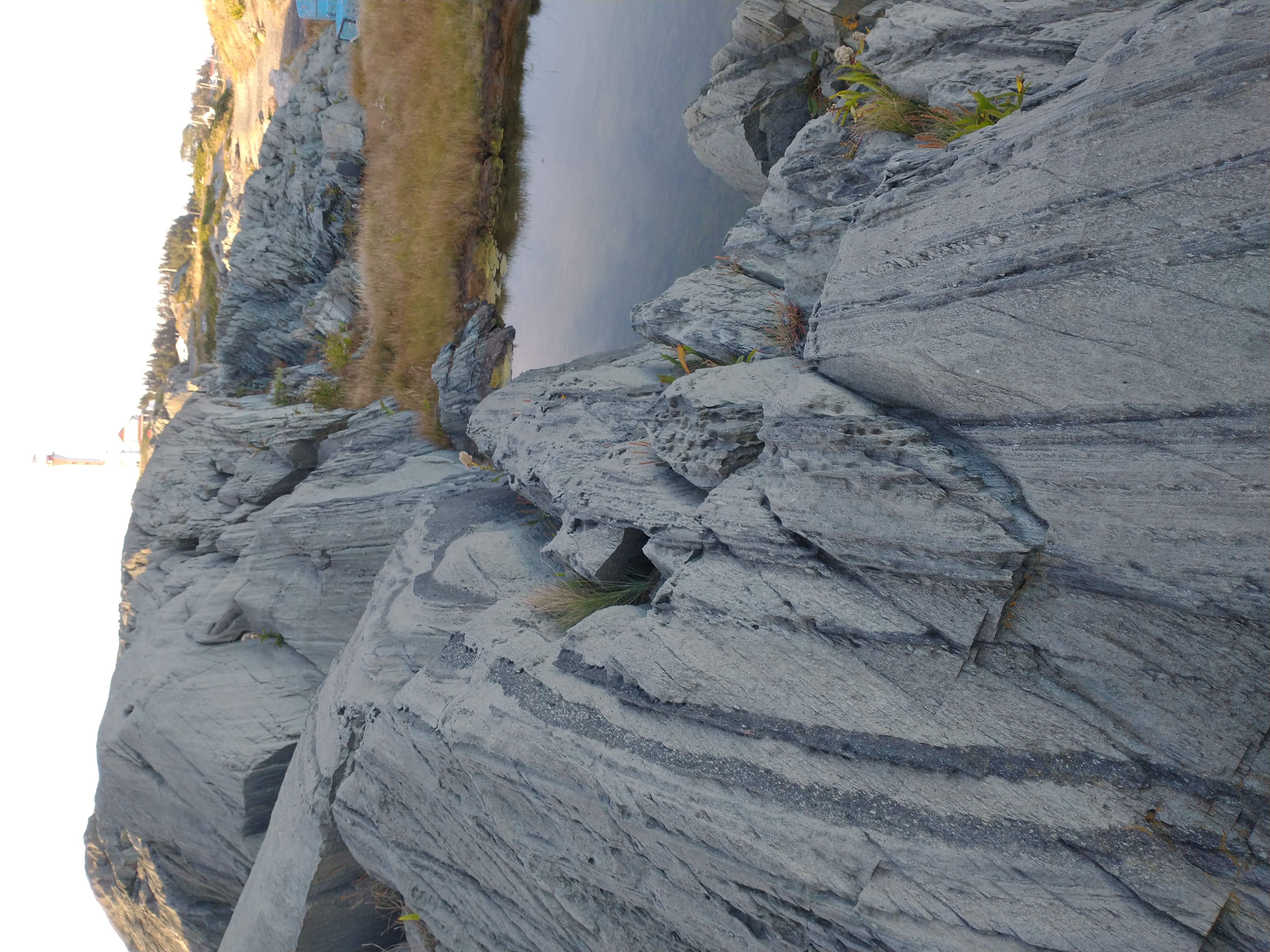 - On the second day of the ride I reached the ocean. Steeply tilted rock at land's edge. As per my guidebook this is sandstone.