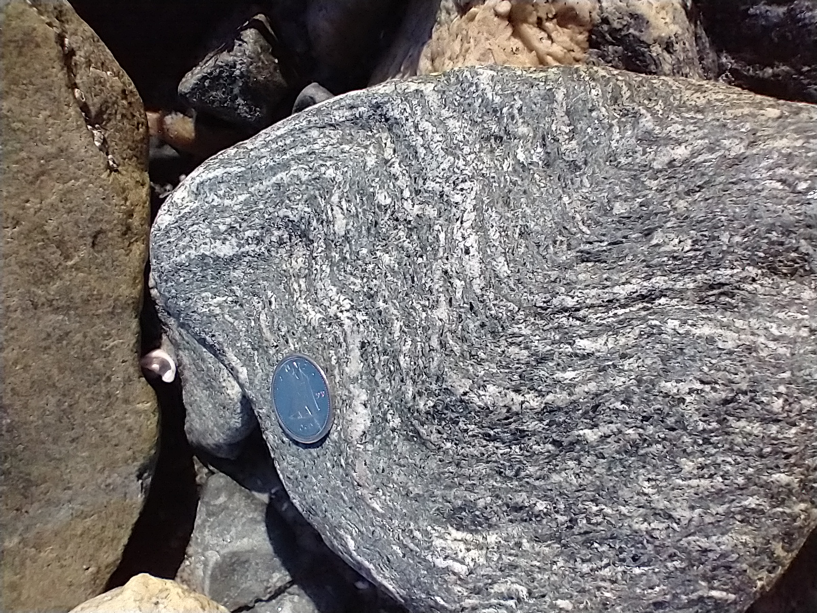 My geological guidebook was Geology of Nova Scotia by Martha H Hild and Sandra Barr. Almost everything I saw on Cape Breton was from the terrane called Ganderia, which is also found in Newfoundland. The mainland is mostly Meguma.