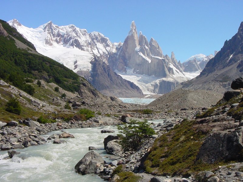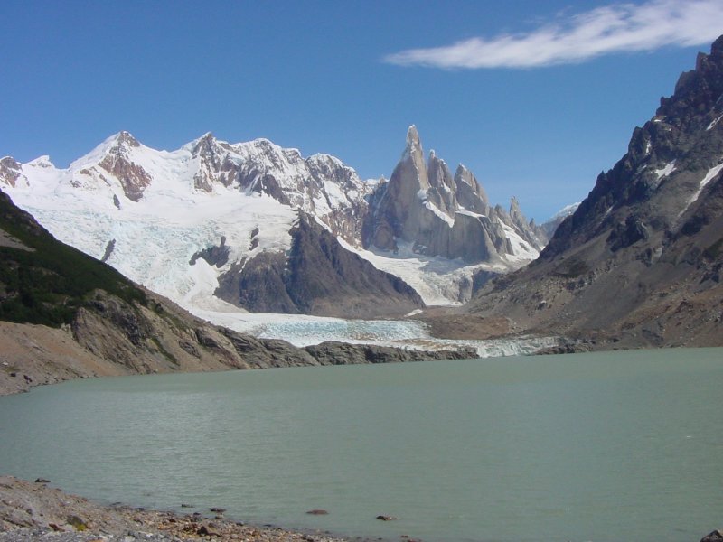 These mountains are formed by fingers of granite which rose up into softer sedimentary rock some 16 million years ago. The surrounding rock eroded, leaving only the granite peaks. We had two long dayhikes in the park, one to Laguna de Los Tres, at the foot of Fitz Roy, and one to Laguna Torre, at the base of Cerro Torre.