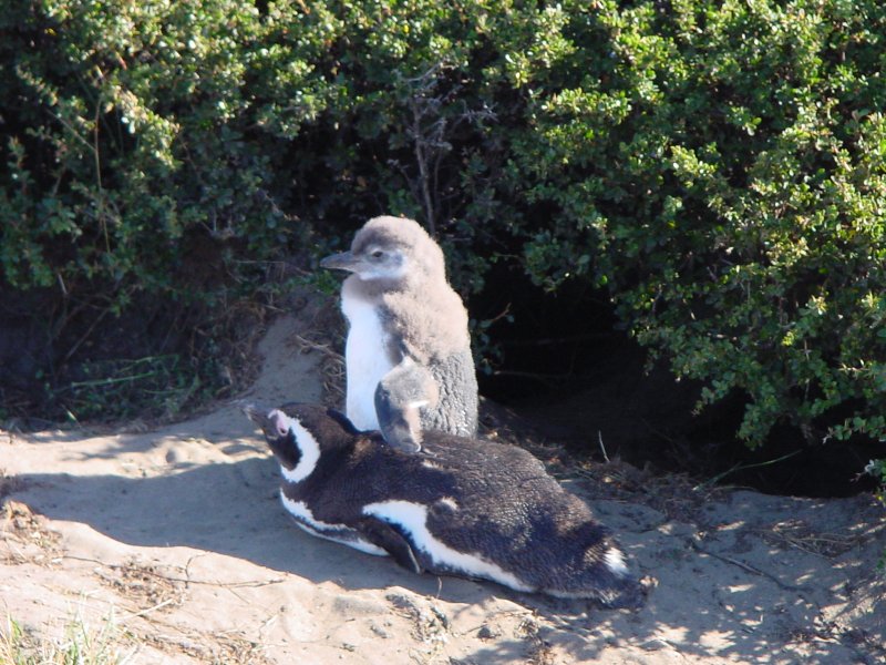 ![]() Penguin chick with parent. |