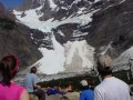 Looking at the glacier it's impossible to get a sense for its true size, because there is nothing to compare it to. The visible ice wall rises 60 meters (the height of a 25 story building), and there is twice as much ice below the lake surface. You really can't tell how big it is unless you see someone walking across it, then you understand that the tiny dot is a person.